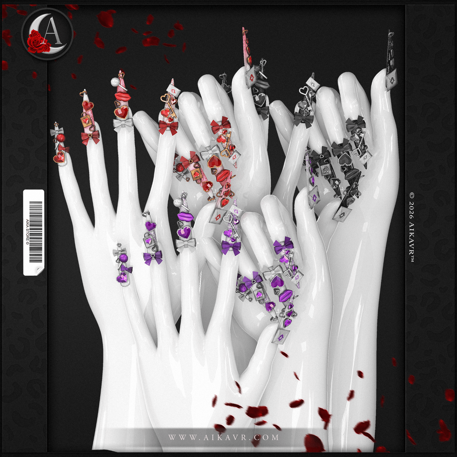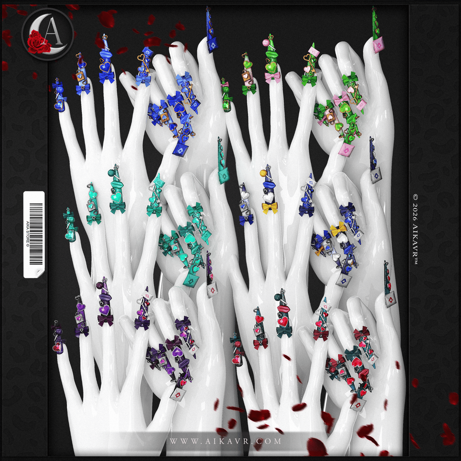 🌹 this set includes: nail set with charms